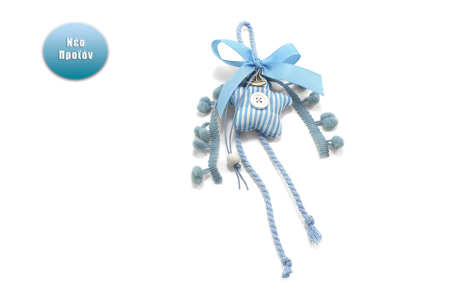 Κρεμαστό υφασμάτινο αστέρι διακοσμητικό ριγέ για βάπτιση σε σιελ απόχρωση.