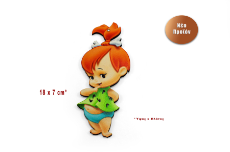 Κρεμαστό ξύλινο διακοσμητικό που απεικονίζει την Pebbles από την δημοφιλή σειρά κινουμένων σχεδίων "flintstone".