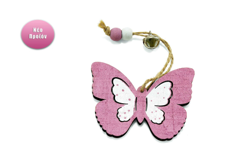 Κρεμαστό ξύλινο διακοσμητικό πεταλούδα σε ροζ απόχρωση.
