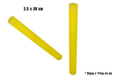 Λαμπάδα πασχαλινή στρογγυλή σαγρέ αρωματικη σε κίτρινη απόχρωση.