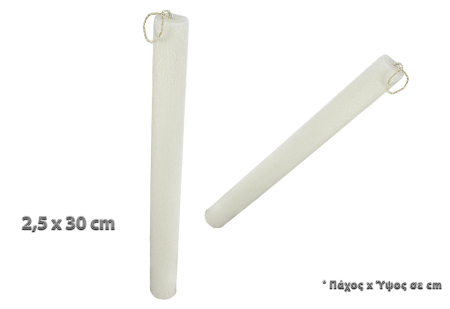 Λαμπάδα πασχαλινή στρογγυλή σαγρέ αρωματικη σε λευκή απόχρωση.