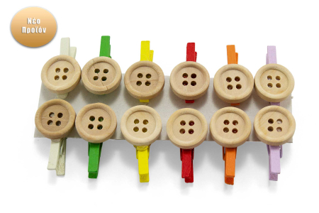 Μανταλάκι ξύλινο διακοσμητικό κουμπί, σε διάφορα χρώματα.