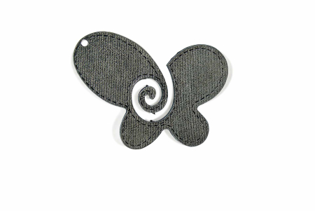 Μεταλλικό κρεμαστό διακοσμητικό πεταλούδα σε ασημί χρώμα και σαγρέ υφή.