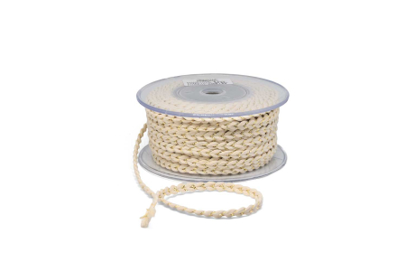 Η πλέξη ψαροκόκαλο (Chevron) που διαγράφεται από τις εκρού βαμβακερές ίνες και η λεπτή, χρυσή λάμψη που αναδύεται από το εσωτερικό της, δημιουργούν ένα μοναδικό οπτικό αποτέλεσμα. Δεν πρόκειται απλώς για κορδόνι, αλλά για μια διακοσμητική τρέσα με χαρακτήρα, διαθέσιμη στο κατάστημα Σπαθάρη Δέσποινα-Είδη Συσκευασίας.