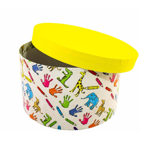 Χειροποίητο Χάρτινο Κουτί-Καπελιέρα, Παιδικό Σχέδιο με Κίτρινο Καπάκι, 3 διάστασεις