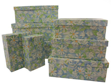 Κουτί χειροποίητο από σκληρό χαρτόνι επενδεδυμένο εξωτερικά εσωτερικά με ντεκόρ μαργαρίτες.