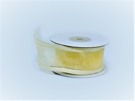 Κορδέλα συρμάτινη διάφανη, χρυσή εκρού