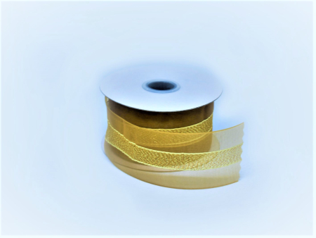Κορδέλα συρμάτινη διάφανη, καφέ με χρυσή ρίγα