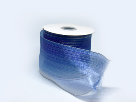 Κορδέλα συρμάτινη διαφανής, "ντεγκραντέ" σε μπλε - ασημί απόχρωση.