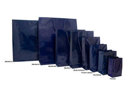 Τσάντα χειροποίητη πλαστικοποιημένη με κορδόνι, σε σε σκούρο μπλε απόχρωση.