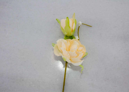 Λουλούδι υφασμάτινο λευκό τριανταφυλλάκι, 13εκ.