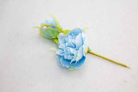 Λουλούδι υφασμάτινο τριανταφυλλάκι σε σιέλ απόχρωση, ύψους 13εκ.