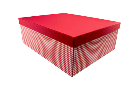 Κουτί χειροποίητο φτιαγμένο από σκληρό χαρτόνι με σχέδιο καρό σε κόκκινη απόχρωση.