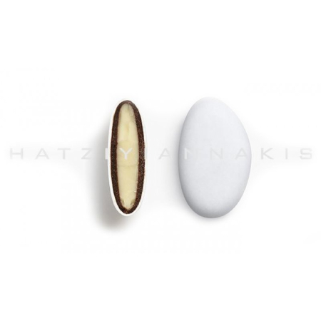 Κουφέτα με λευκή σοκολάτα & σοκολάτα (55% κακάο) με λεπτή επικάλυψη ζάχαρης, σε λευκή ματ απόχρωση, με γεύση zabaglione.