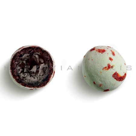 Κουφέτα που μοιάζουν με αληθινά βότσαλα με ολόκληρο σιροπιαστό κεράσι αμαρένα και σοκολάτα (70% κακάο) με λεπτή επικάλυψη ζάχαρης.