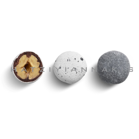 Κουφέτα που μοιάζουν με αληθινά βότσαλα με καρυδόψιχα και σοκολάτα γάλακτος, με λεπτή επικάλυψη ζάχαρης.