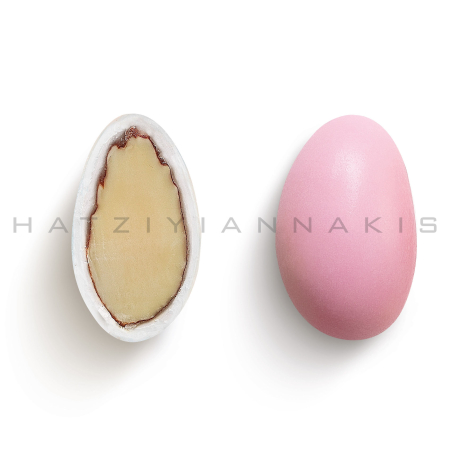 Ολόκληρο καβουρδισμένο αμύγδαλο με επικάλυψη ζάχαρης σε ροζ ανοιχτή ματ απόχρωση.