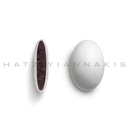 Κουφέτα με πραλίνα και επικάλυψη ζάχαρης σε λευκή γυαλιστερή απόχρωση.