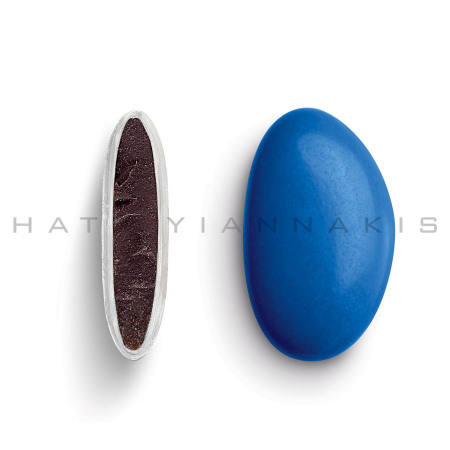 Κουφέτα από φυσικό εκχύλισμα βανίλιας με σοκολάτα (70% κακάο) με λεπτή επικάλυψη ζάχαρης σε πετρόλ γυαλιστερή απόχρωση.