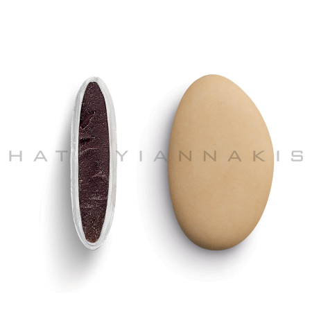 Κουφέτα με σοκολάτα (70% κακάο) με λεπτή επικάλυψη ζάχαρης σε μπεζ ματ απόχρωση.