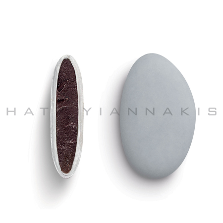 Κουφέτα από φυσικό εκχύλισμα βανίλιας με σοκολάτα (70% κακάο) με λεπτή επικάλυψη ζάχαρης σε γκρι ματ απόχρωση.