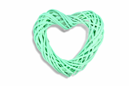 Στεφανάκι φτιαγμένο από κλαδιά σε σχήμα καρδιάς σε λαχανί απόχρωση.