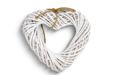 Στεφάνι φτιαγμένο από κλαδιά σε σχήμα καρδιάς βαμμένο σε λευκό χρώμα διακοσμημένο με κορδόνι.