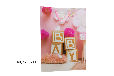 Τσάντα χειροποίητη πλαστικοποιημένη με κορδόνι, επενδεδυμένη εξωτερικά με θέμα "baby", σε ροζ απόχρωση.