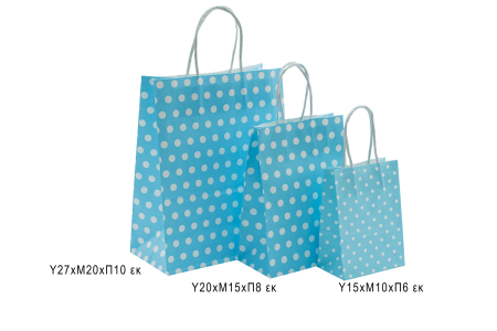 Τσάντα χάρτινη με στριφτή λαβή σε γαλάζια απόχρωση με λευκά πουά.
