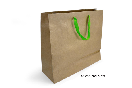 Τσάντα χάρτινη χειροποιήτη, σε κράφτ απόχρωση με κορδόνι από φακαρόλα σε λαχανί απόχρωση.