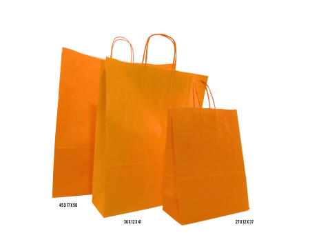 Τσάντα χάρτινη χρωματιστή με στριφτή λαβή σε πορτοκαλί απόχρωση.