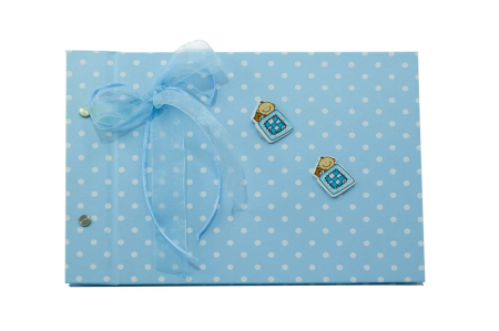 Βιβλίο ευχών με χάρτινη επένδυση με λευκά πουά σε σιέλ απόχρωση
