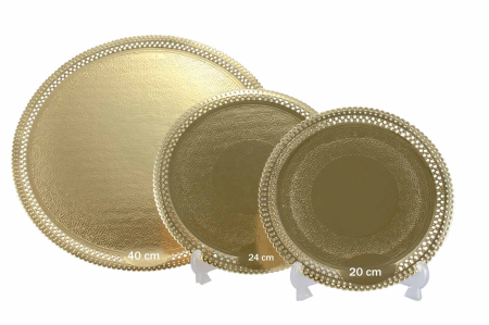 Χάρτινοι στρογγυλοί χρυσοί δίσκοι σερβιρίσματος σε διάφορες διαστάσεις.