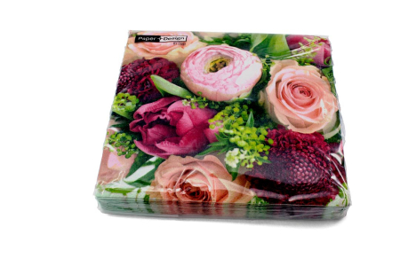 Χαρτοπετσέτες πολυτελείας με σχέδιο ανθοδέσμη, σε συσκευασία των 20 τεμαχίων.
