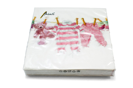 Χαρτοπετσέτες πολυτελείας με σχέδιο παιδικά φορμάκια ροζ, σε συσκευασία των 20 τεμαχίων.