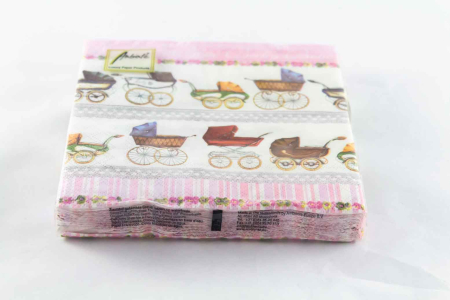 Χαρτοπετσέτες πολυτελείας με σχέδιο "παιδικό καροτσάκι", σε ροζ απόχρωση.