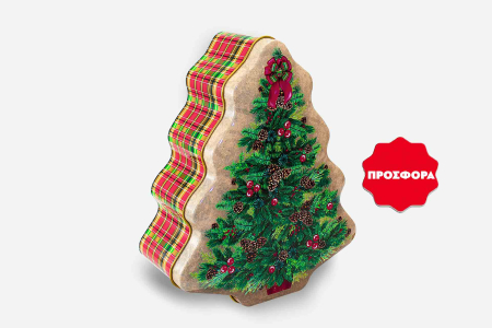 Στο μεταλλικό καπάκι είναι ζωγραφίσμένο χριστουγεννιάτικο δέντρο